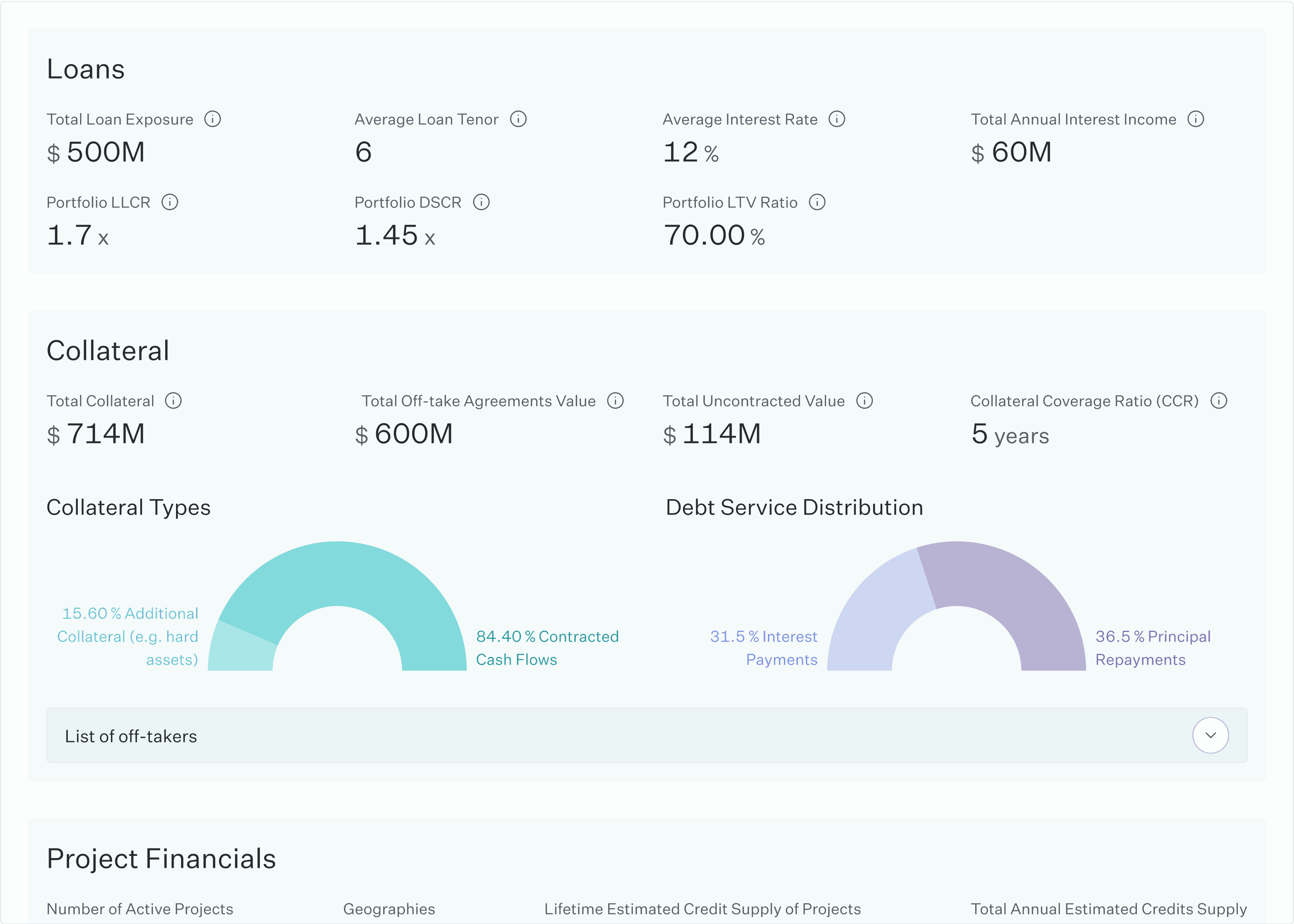 Kumo enables packaging CDR projects into one financing vehicle (Special Purpose Vehicle) in order to issue lower risk bonds backed by cash flows from carbon credit sales, off-take agreements, and additional revenue streams. This de-risks investor participation, and allows project developers to access institutional debt finance at a lower cost.